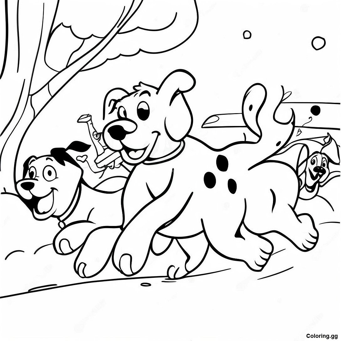 下载 101隻斑點狗在雪中奔跑著色頁 的可打印 PDF