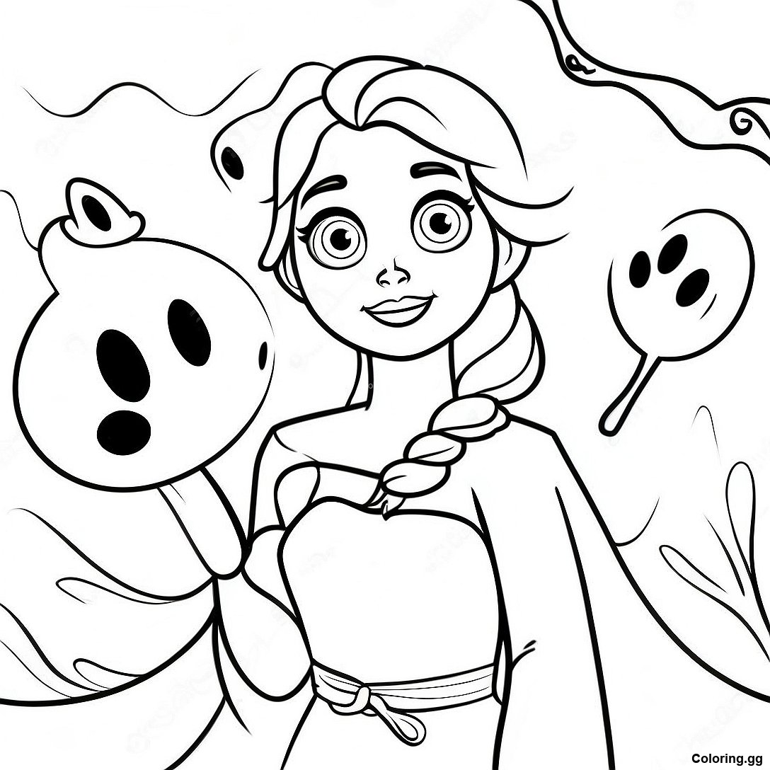 下载 艾莎被鬼魂包圍的著色頁 的可打印 PDF