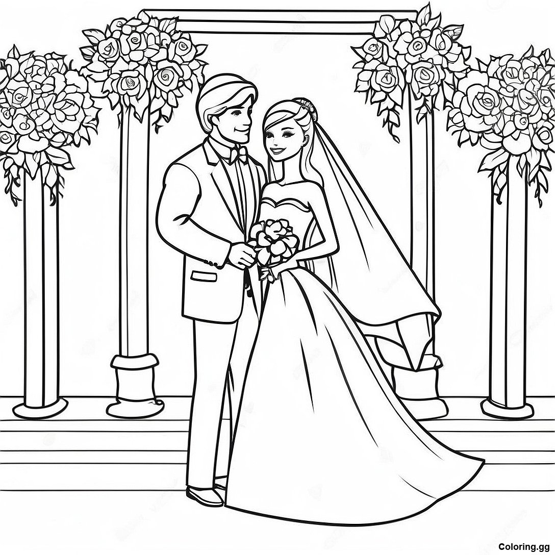 下载 芭比與肯的婚禮場景著色頁 的可打印 PDF
