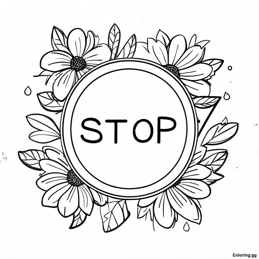 下载 被花圍繞的停車標誌著色頁 的可打印 PDF