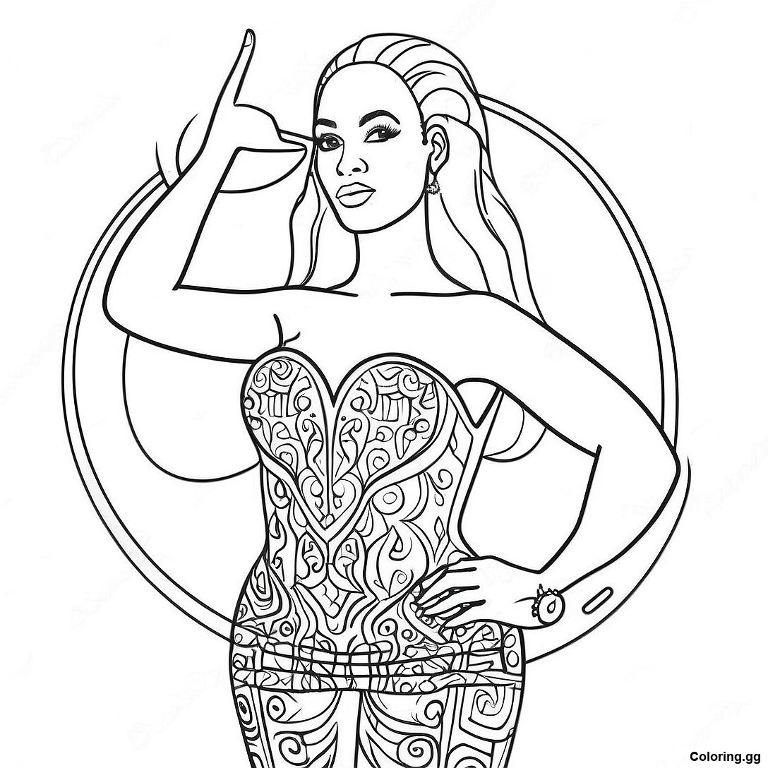 下载 碧昂絲穿著華麗服裝著色頁 的可打印 PDF