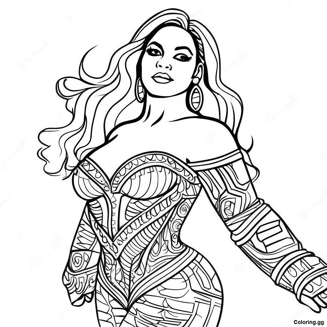 下载 碧昂絲穿著華麗服裝著色頁 的可打印 PDF