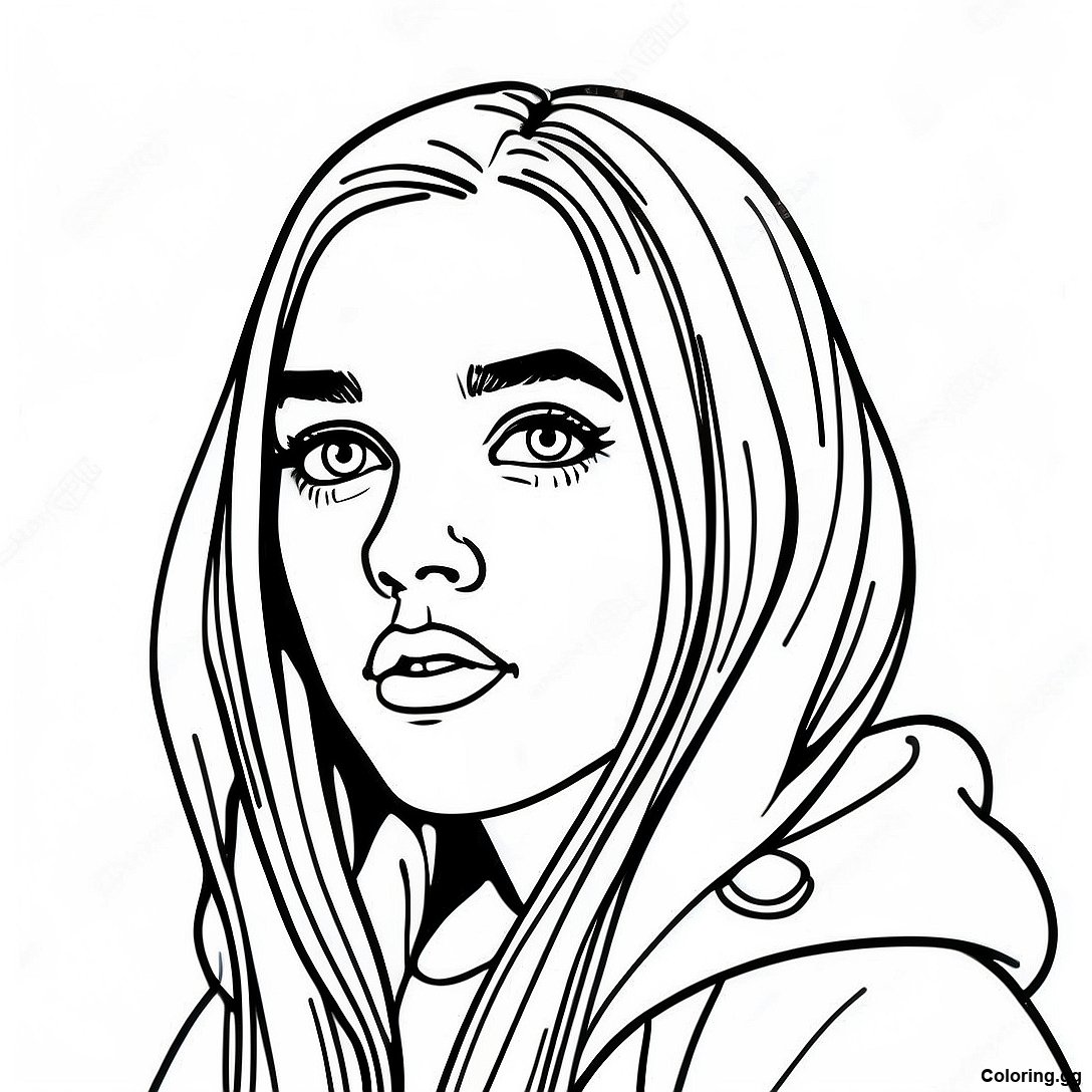 下载 比莉·艾利什肖像著色頁 的可打印 PDF