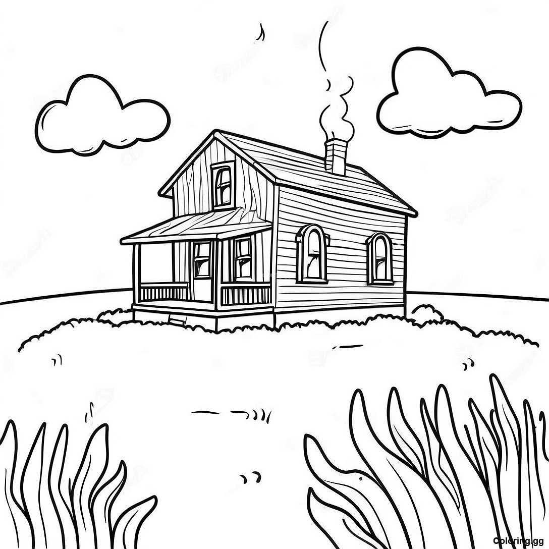Cao Yuan Shang De Xiao Fang Zi Zhu Se Ye