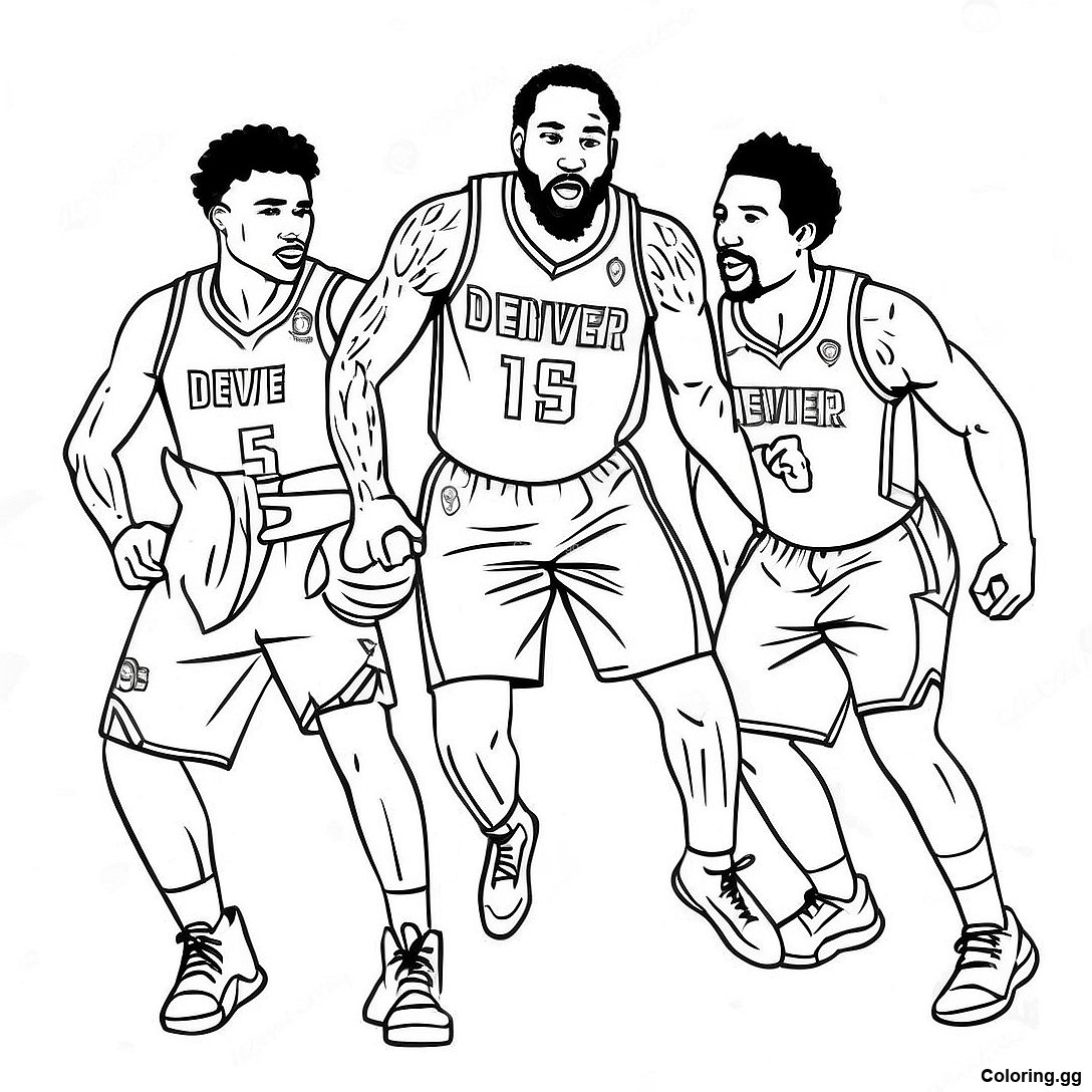 下载 丹佛掘金隊球員在比賽中著色頁 的可打印 PDF