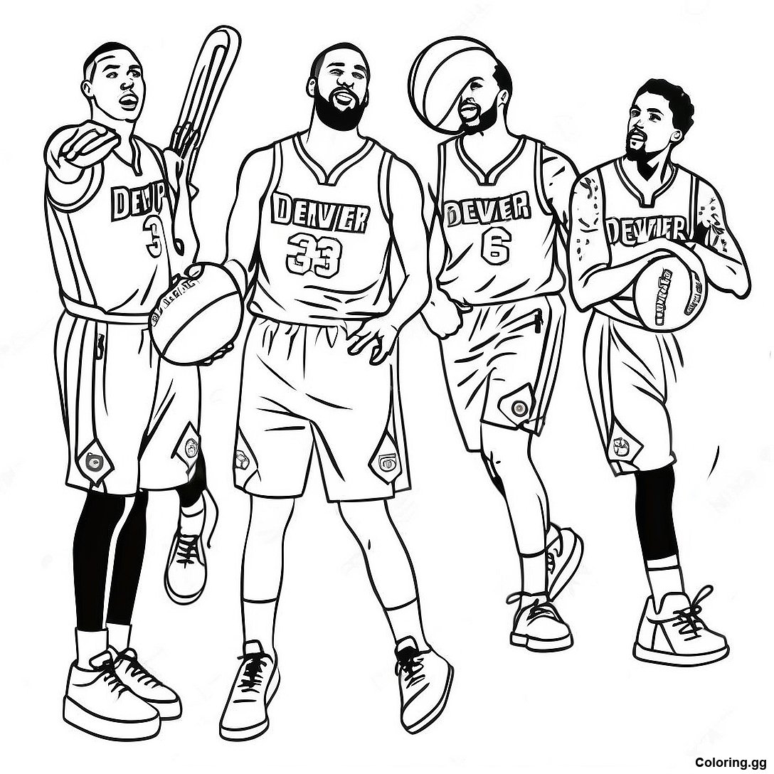 下载 丹佛掘金隊球員在比賽中著色頁 的可打印 PDF