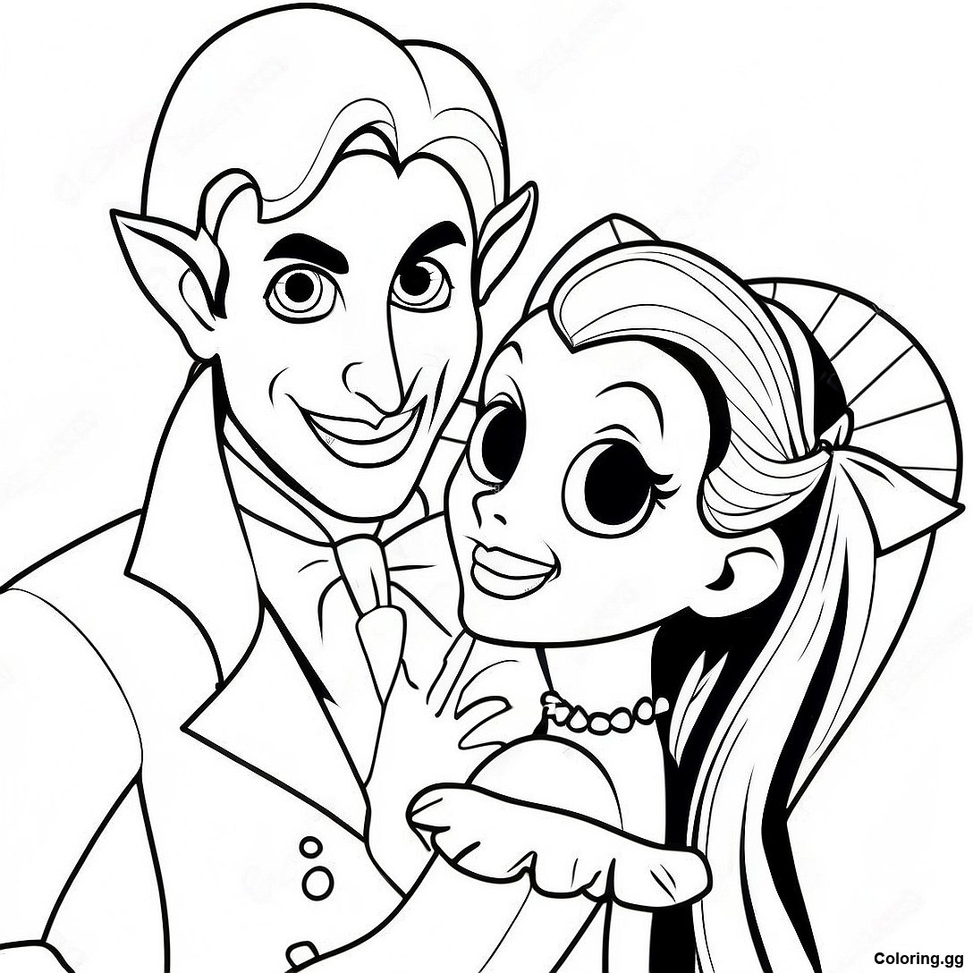 下载 德古拉拉帶著友好的吸血鬼微笑著色頁 的可打印 PDF