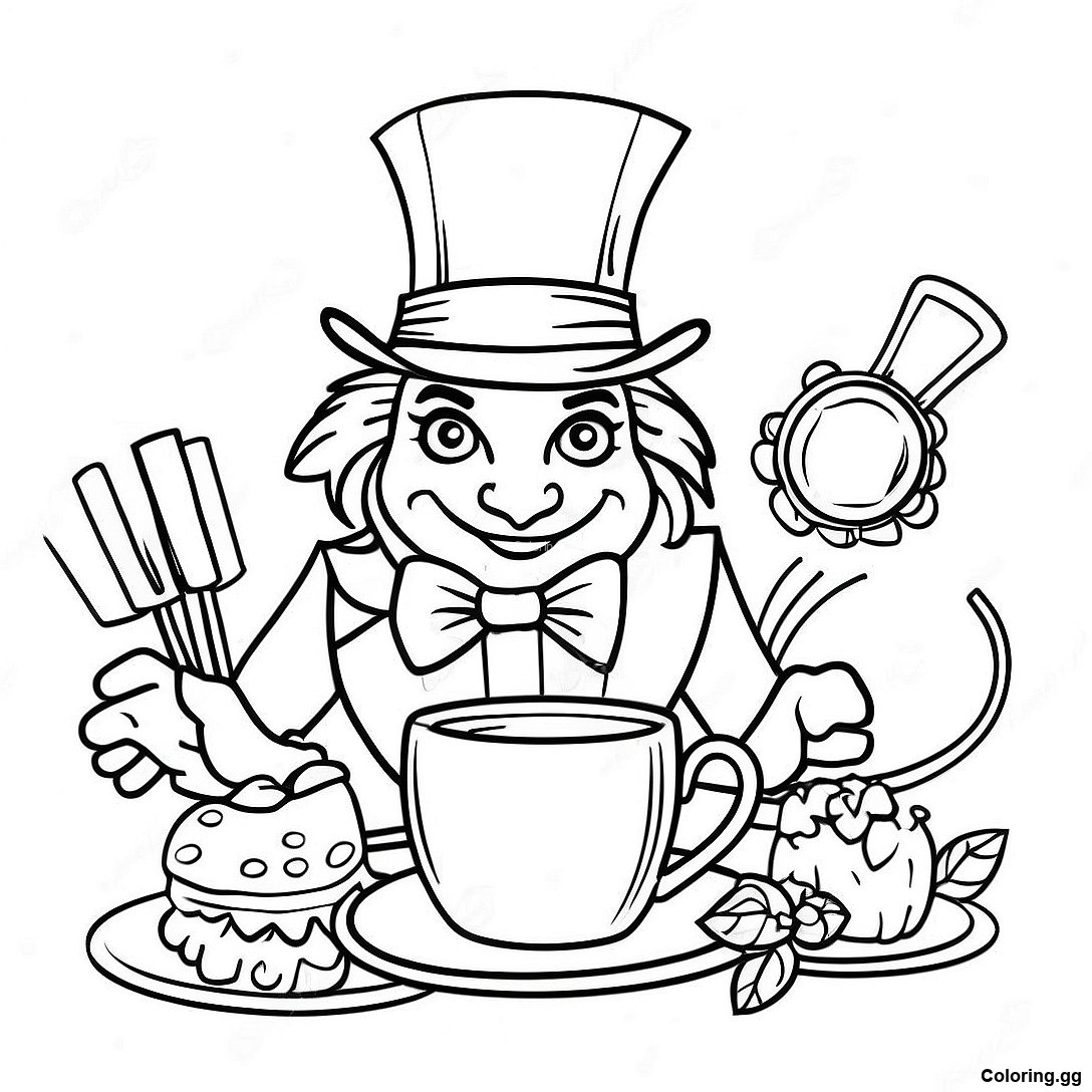 下载 瘋帽子茶會著色頁 的可打印 PDF