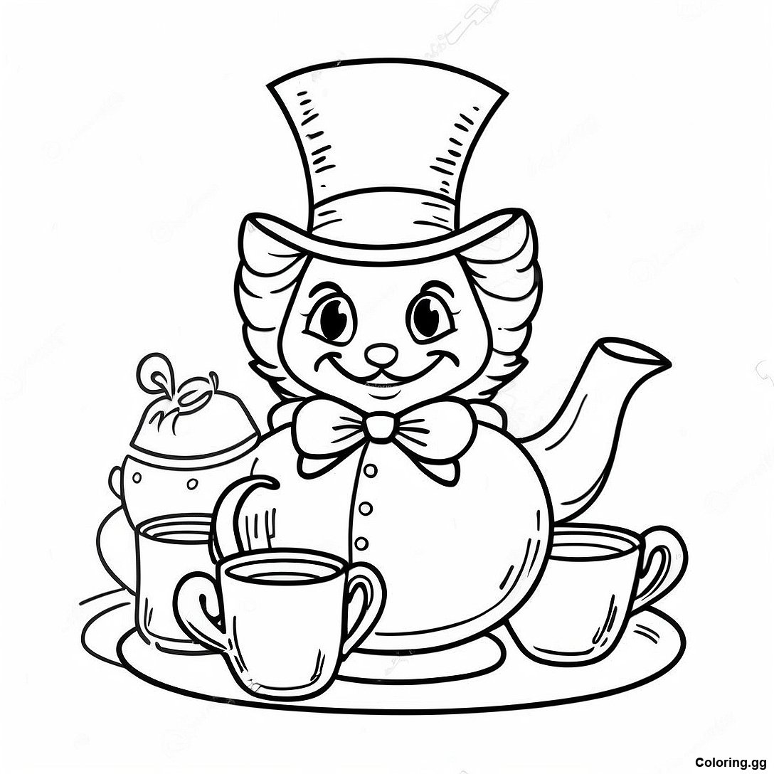 下载 瘋帽子茶會著色頁 的可打印 PDF