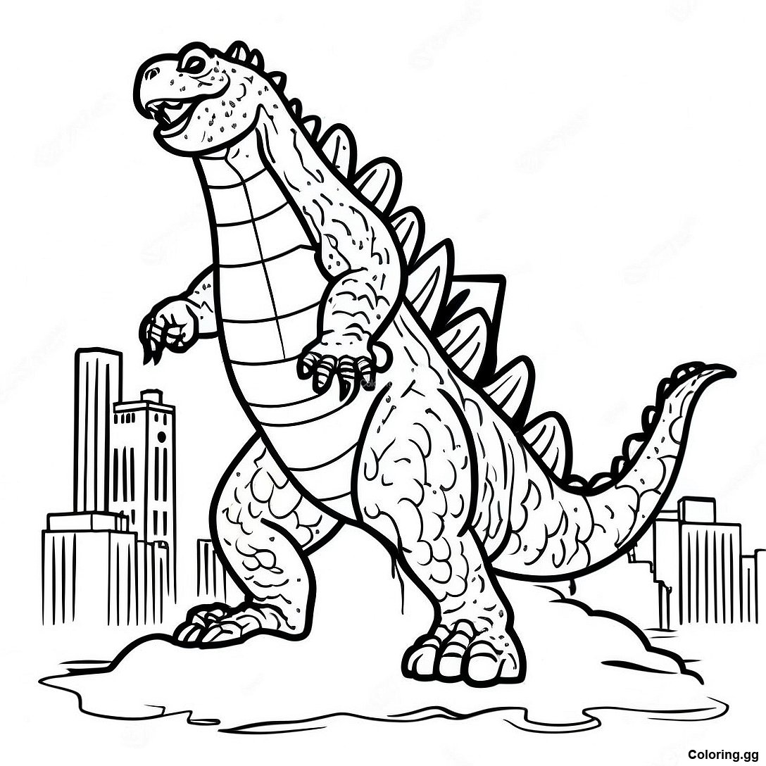 下载 哥吉拉摧毀建築著色頁 的可打印 PDF