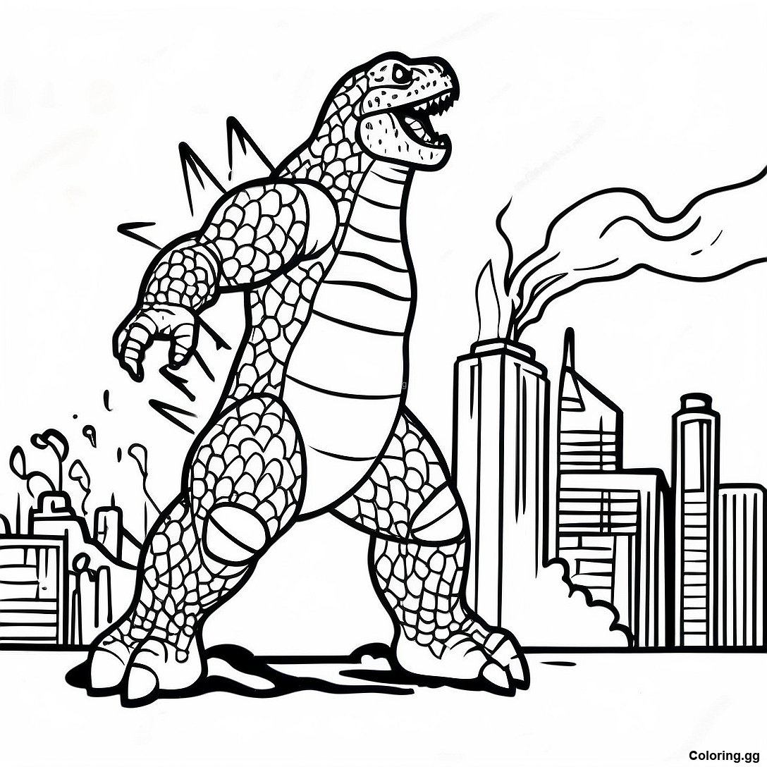 下载 哥吉拉摧毀建築著色頁 的可打印 PDF