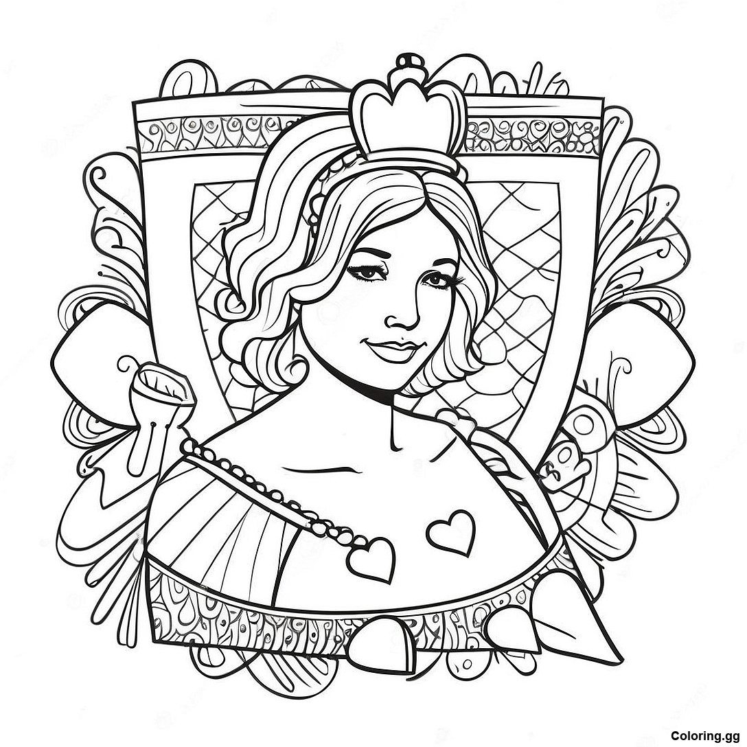 下载 紅心女王撲克牌著色頁 的可打印 PDF