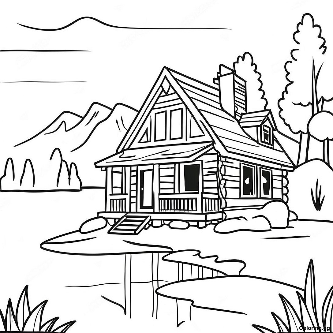 湖邊迷人的木屋著色頁