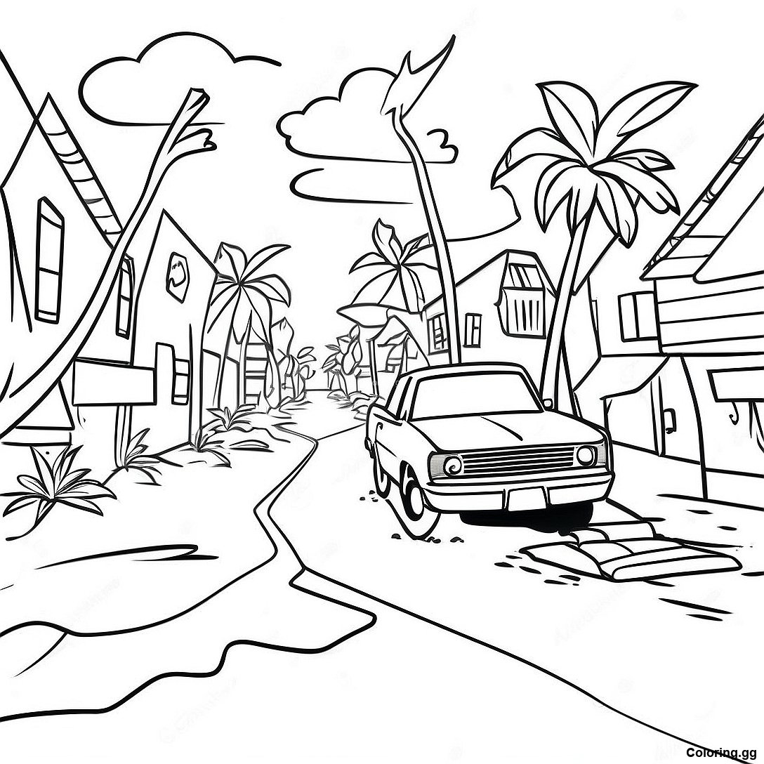 下载 颶風損害場景著色頁 的可打印 PDF