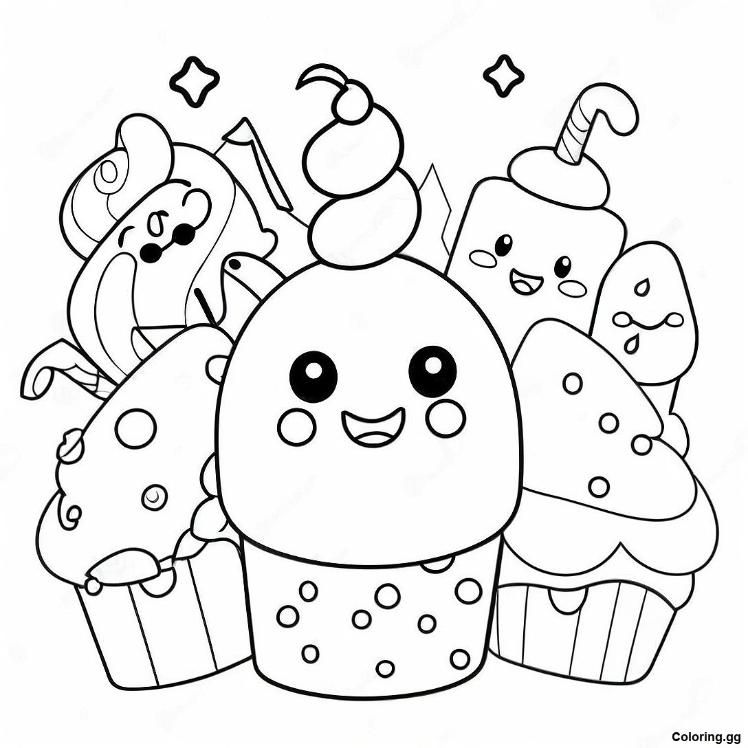 下载 可愛的數字小吃與杯子蛋糕著色頁 的可打印 PDF
