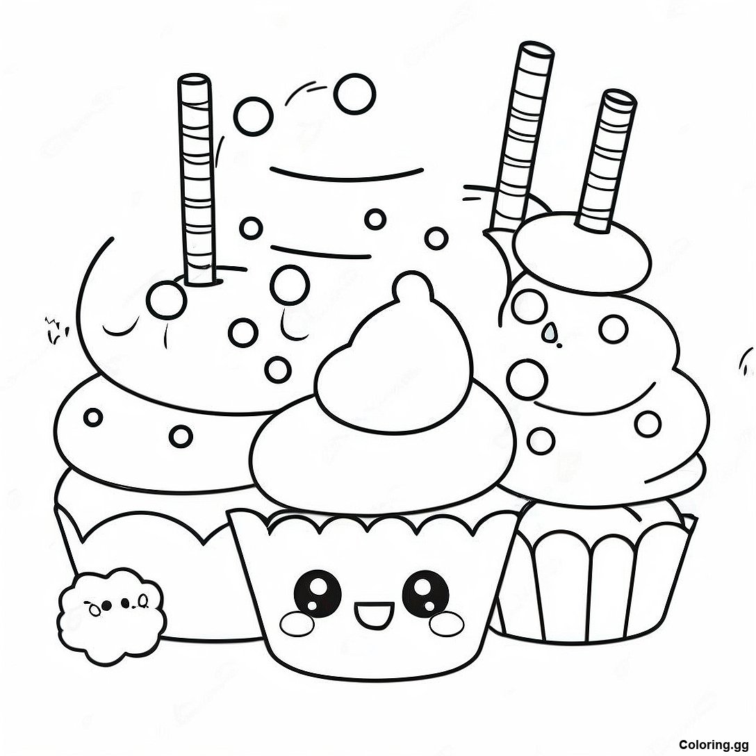 下载 可愛的數字小吃與杯子蛋糕著色頁 的可打印 PDF