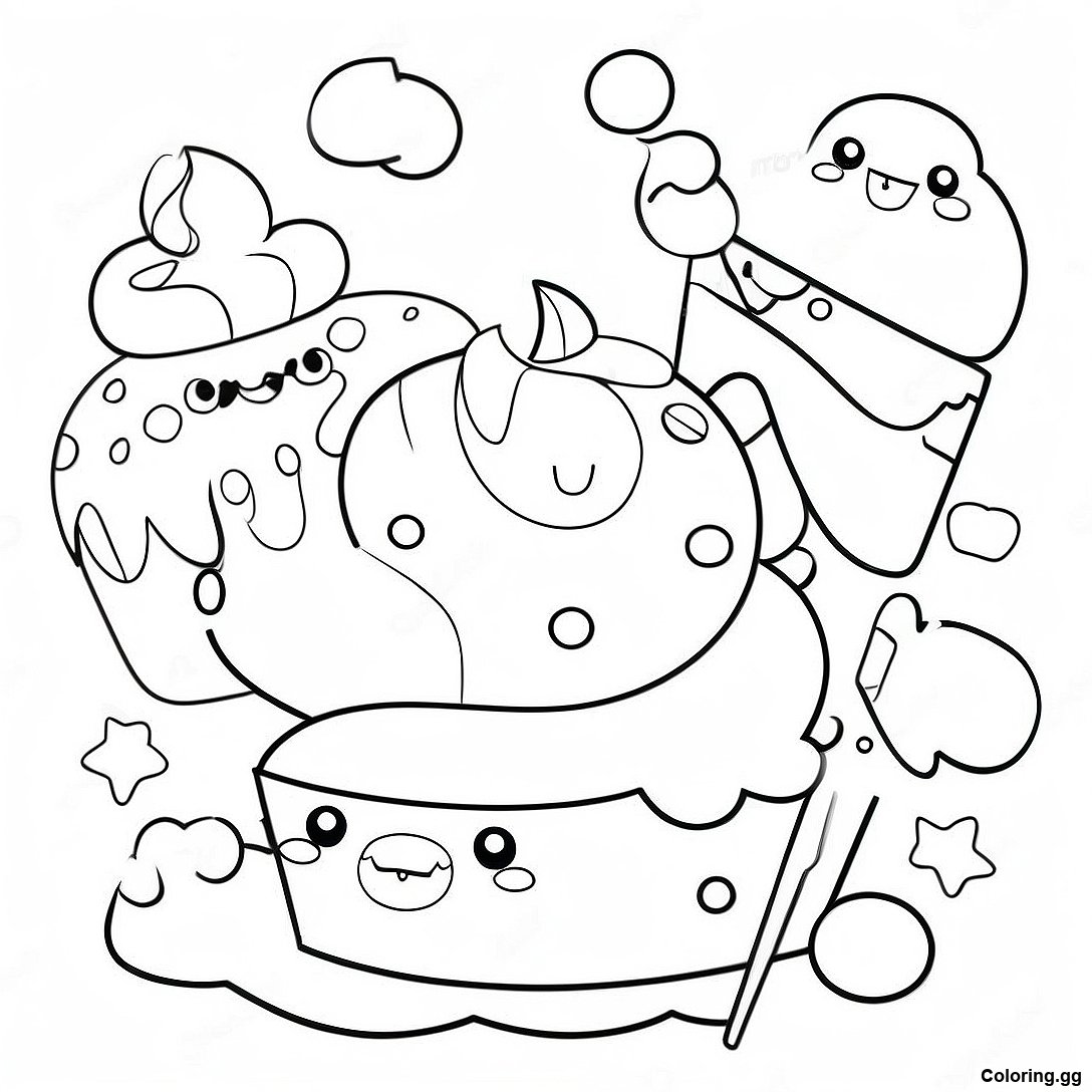 下载 可愛的數字小吃與杯子蛋糕著色頁 的可打印 PDF