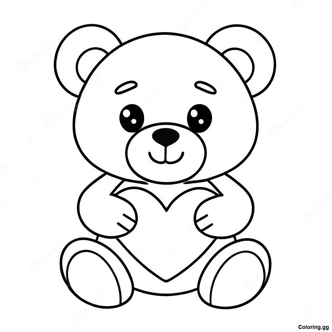 下载 可愛的泰迪熊與心形著色頁 的可打印 PDF