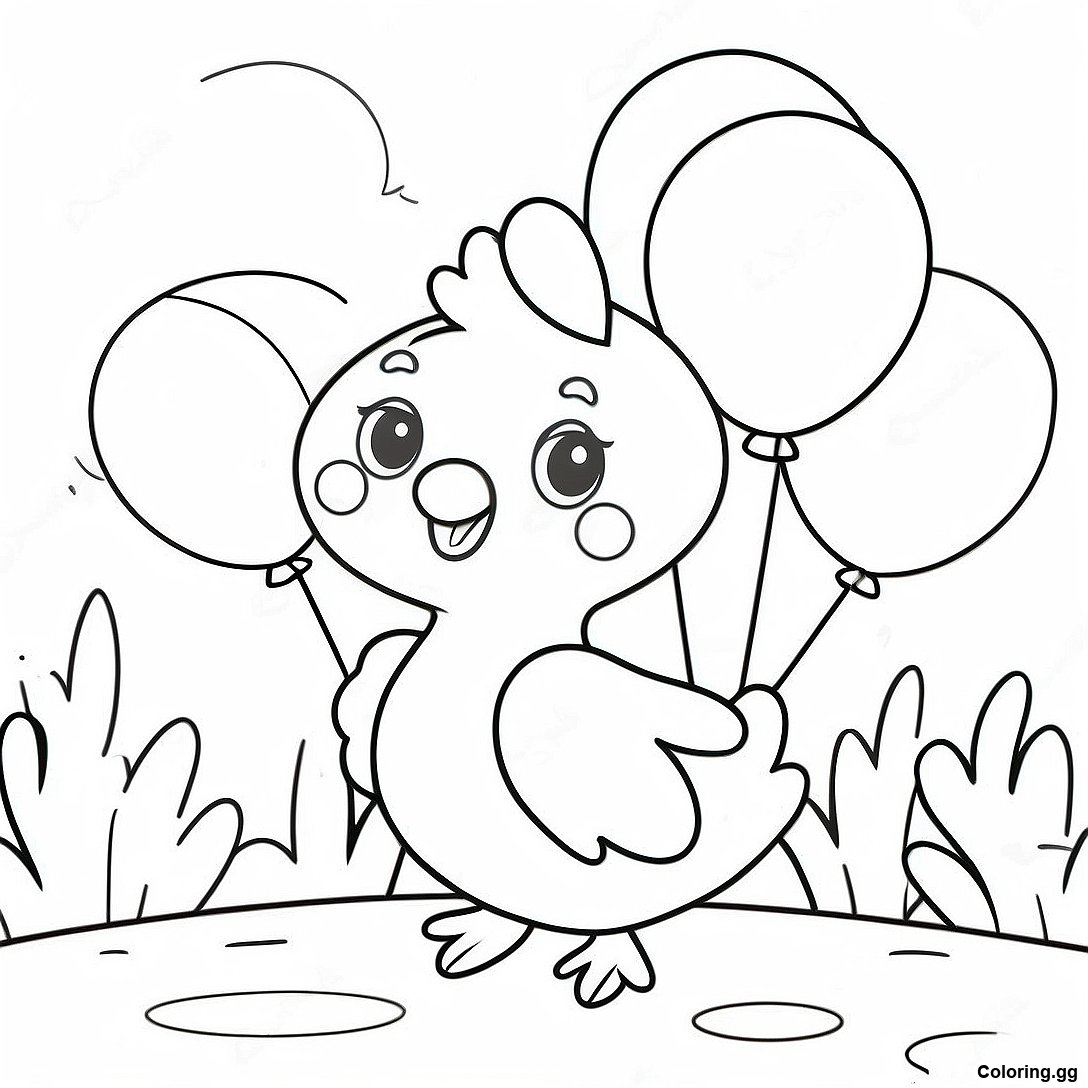 下载 可愛的小女孩與氣球著色頁 的可打印 PDF