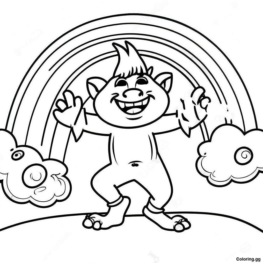下载 快樂的巨魔在彩虹下跳舞著色頁 的可打印 PDF