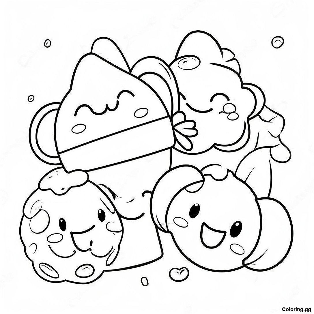 下载 快樂的數字小吃一起玩耍著色頁 的可打印 PDF