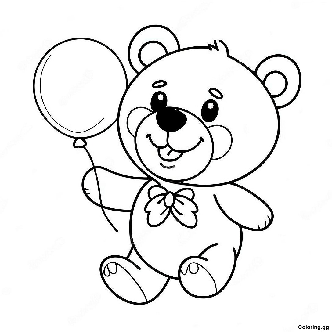 快樂的泰迪熊抱著氣球的著色頁