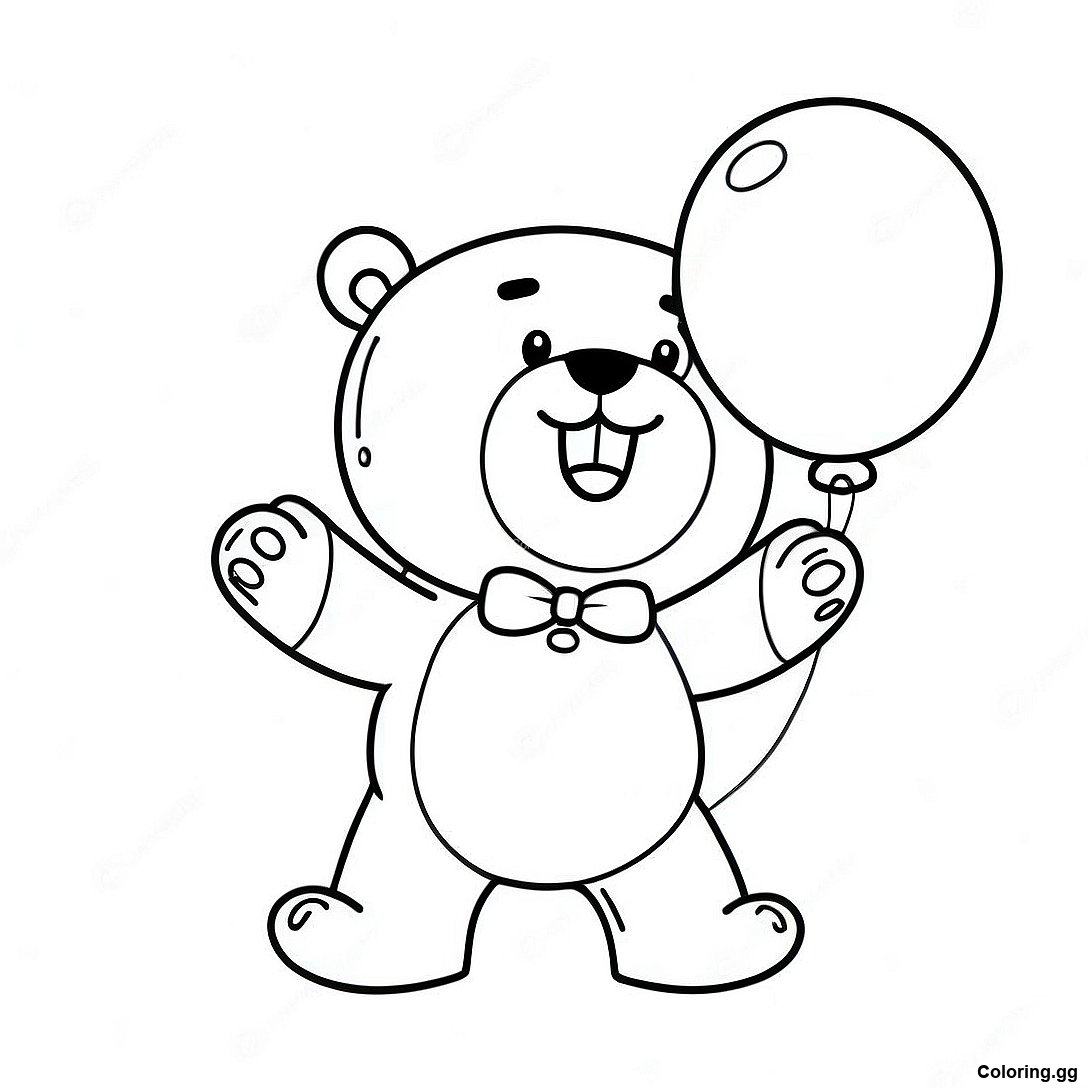 下载 快樂的泰迪熊抱著氣球的著色頁 的可打印 PDF