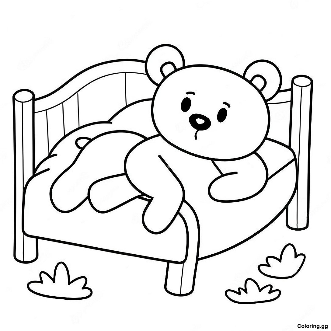 困倦的泰迪熊在床上的著色頁