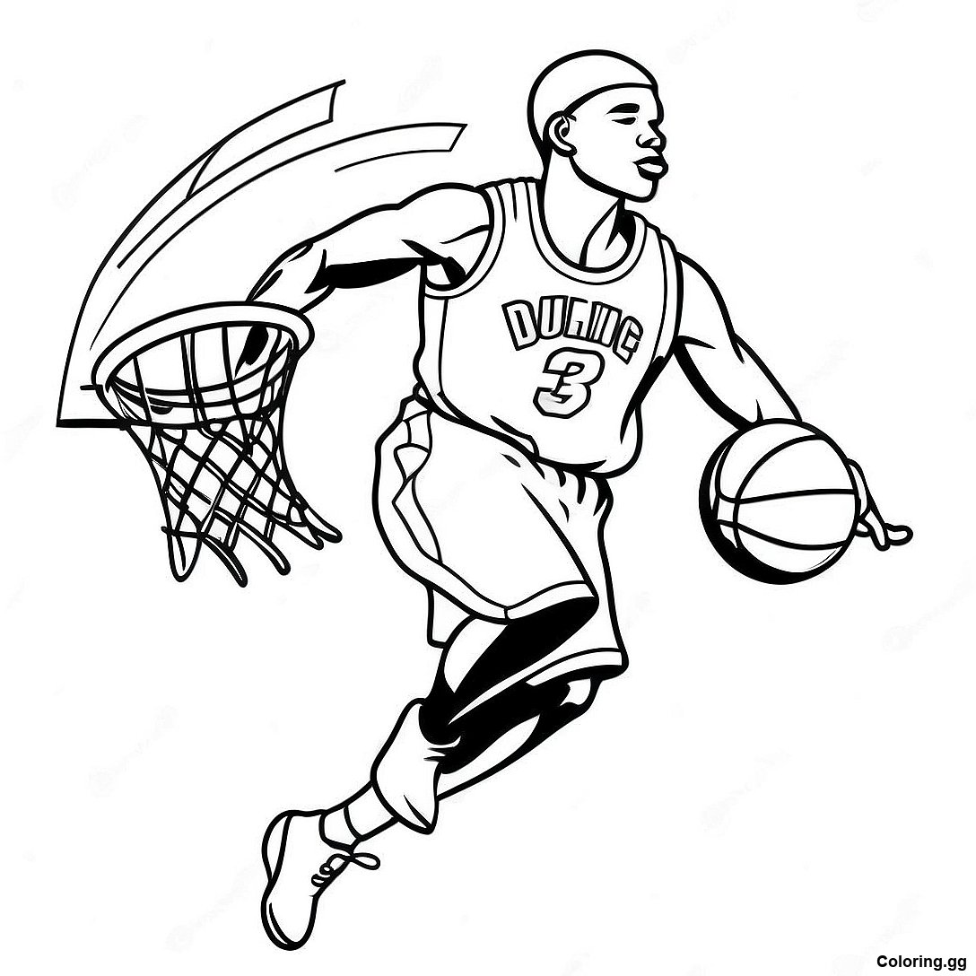 下载 籃球運動員灌籃著色頁 的可打印 PDF