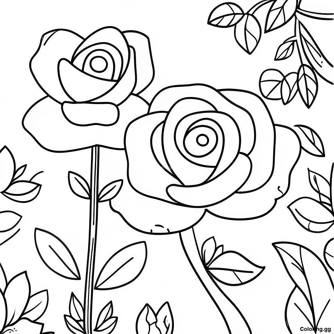 下载 玫瑰花園場景著色頁 的可打印 PDF
