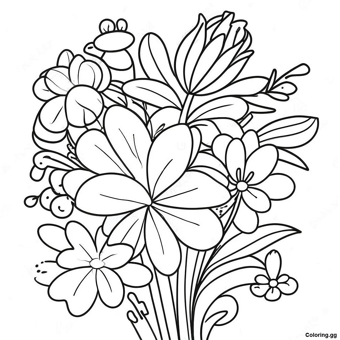 下载 美麗的母親節花束著色頁 的可打印 PDF