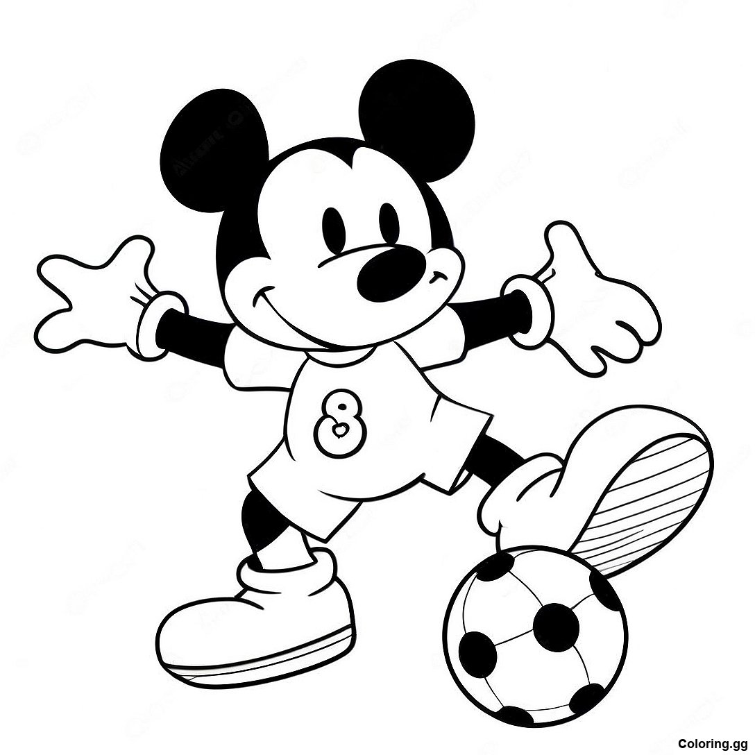 下载 米奇老鼠踢足球著色頁 的可打印 PDF