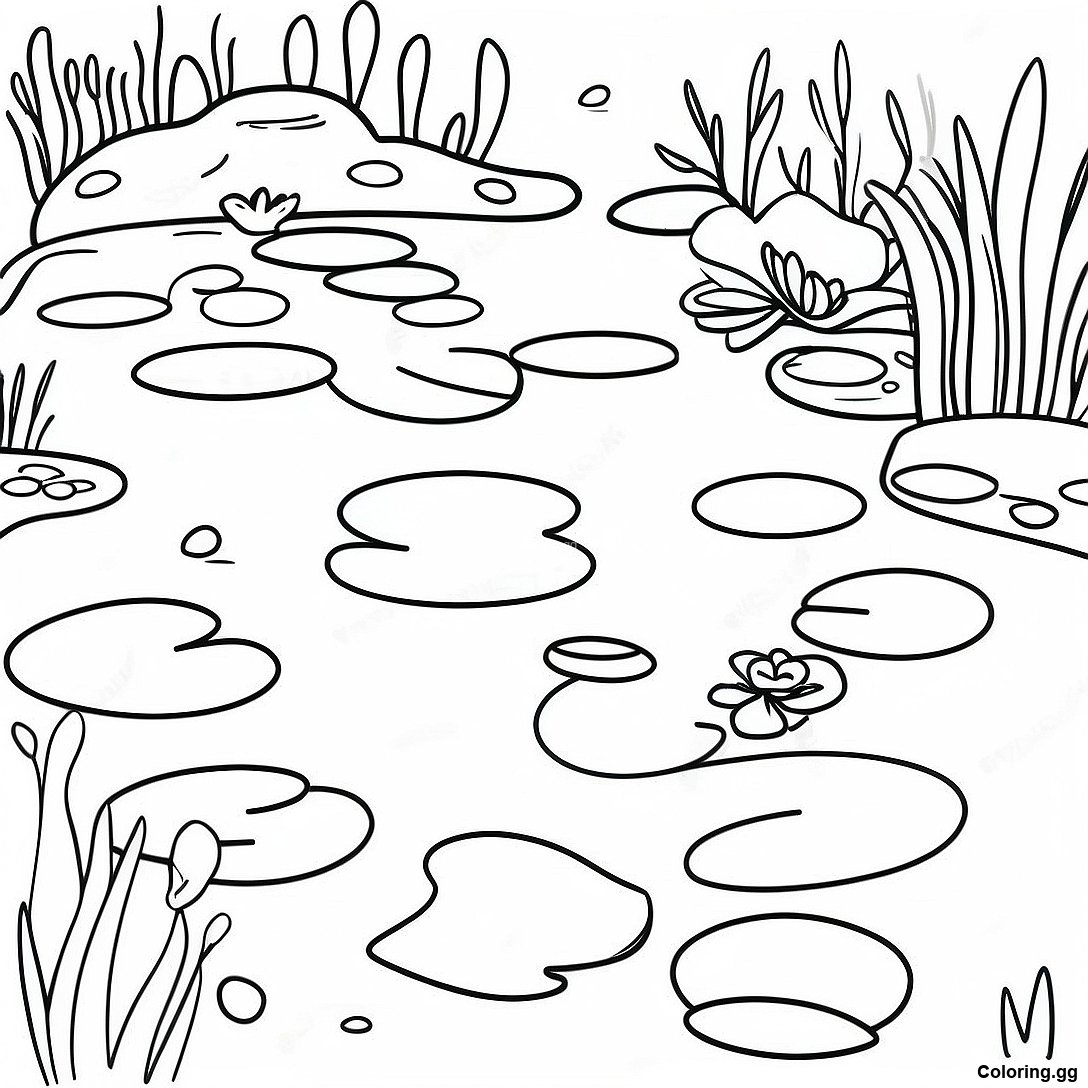 下载 迷人的池塘與睡蓮著色頁 的可打印 PDF