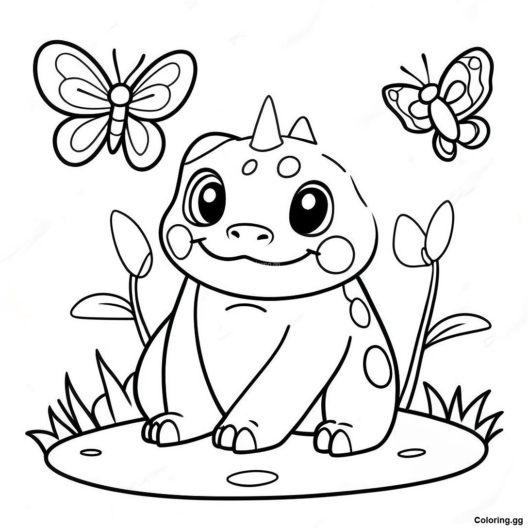 下载 妙蛙種子與五彩斑斕的蝴蝶著色頁 的可打印 PDF