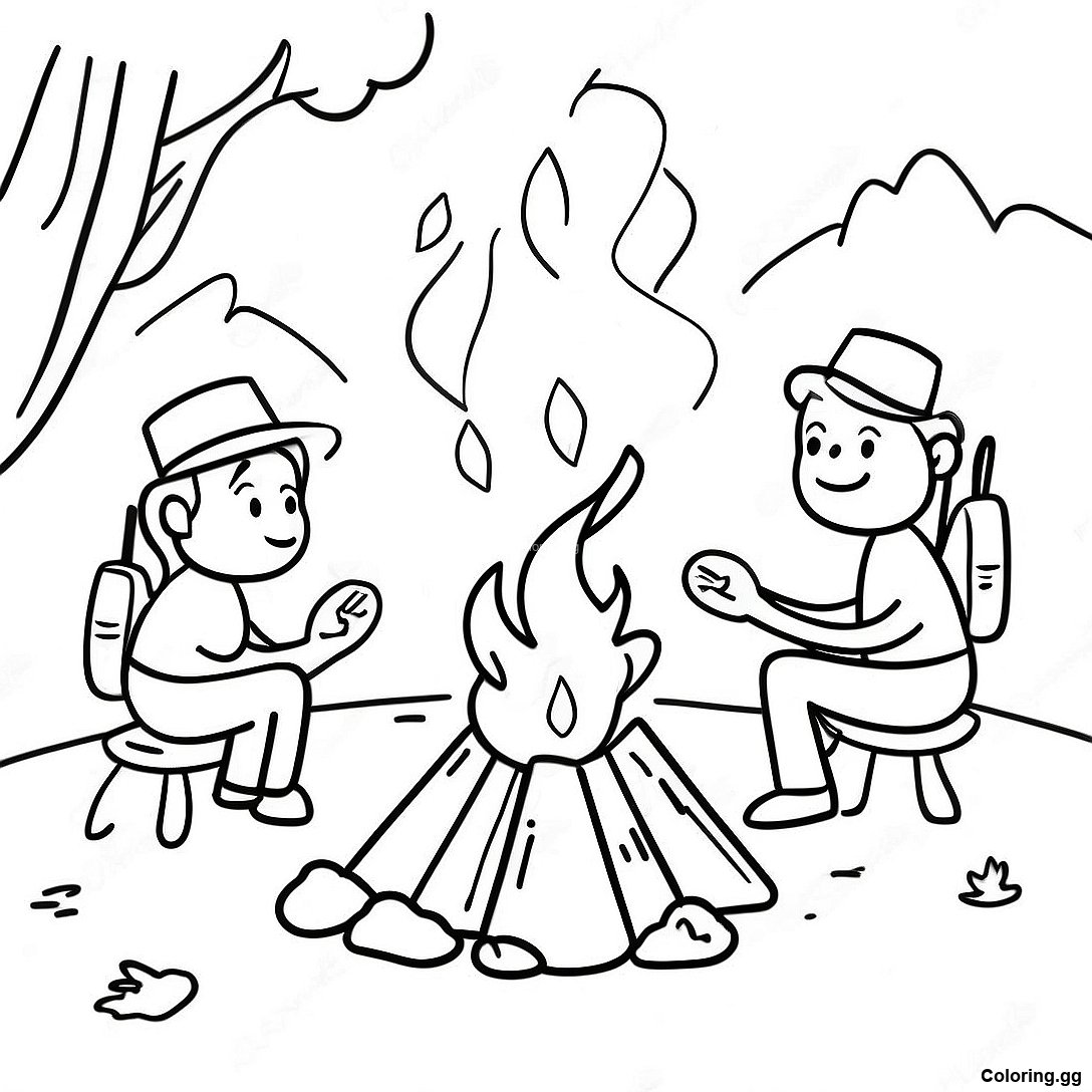 下载 冒險的營火場景著色頁 的可打印 PDF