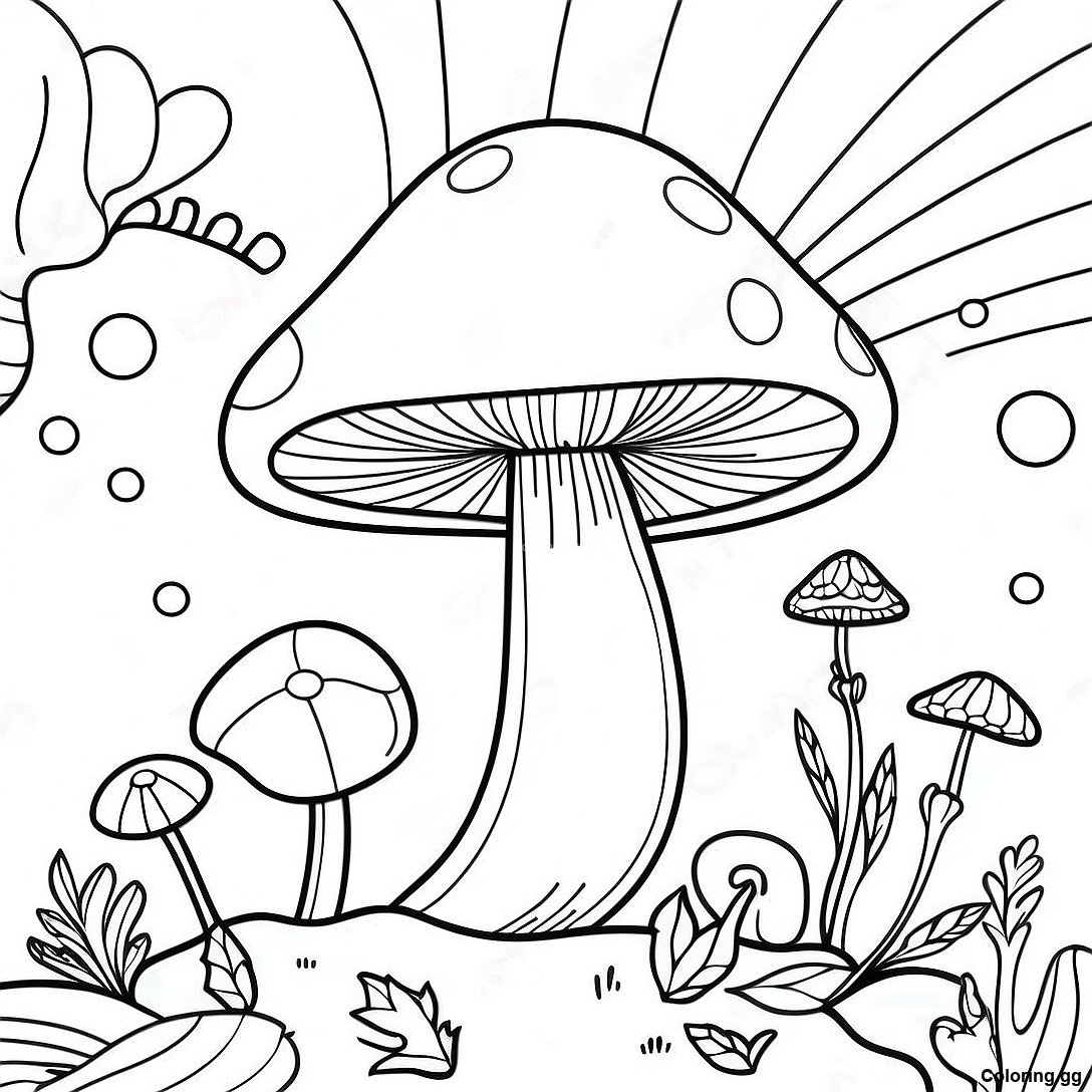 色彩繽紛的迷幻蘑菇著色頁