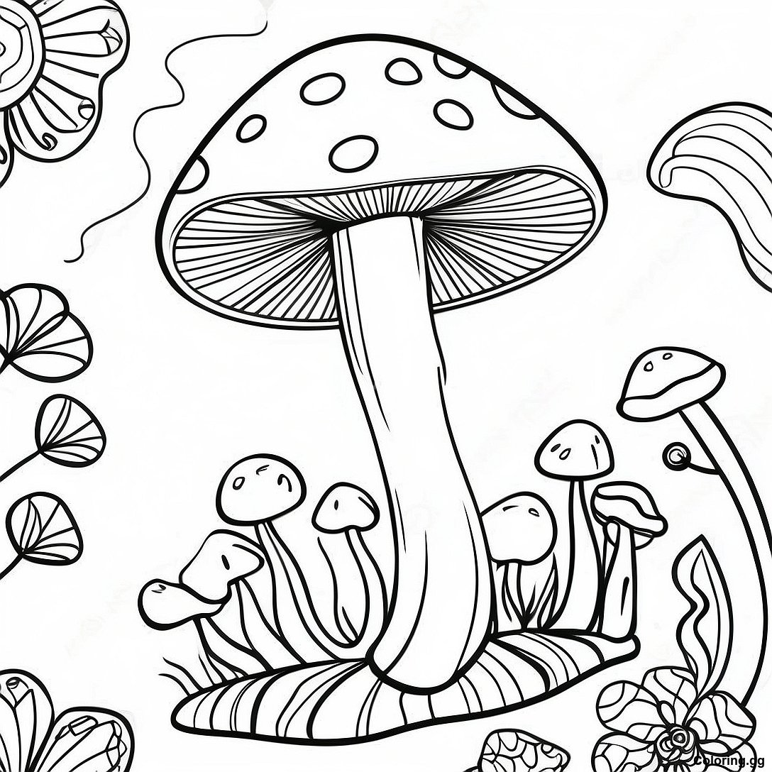 下载 色彩繽紛的迷幻蘑菇著色頁 的可打印 PDF