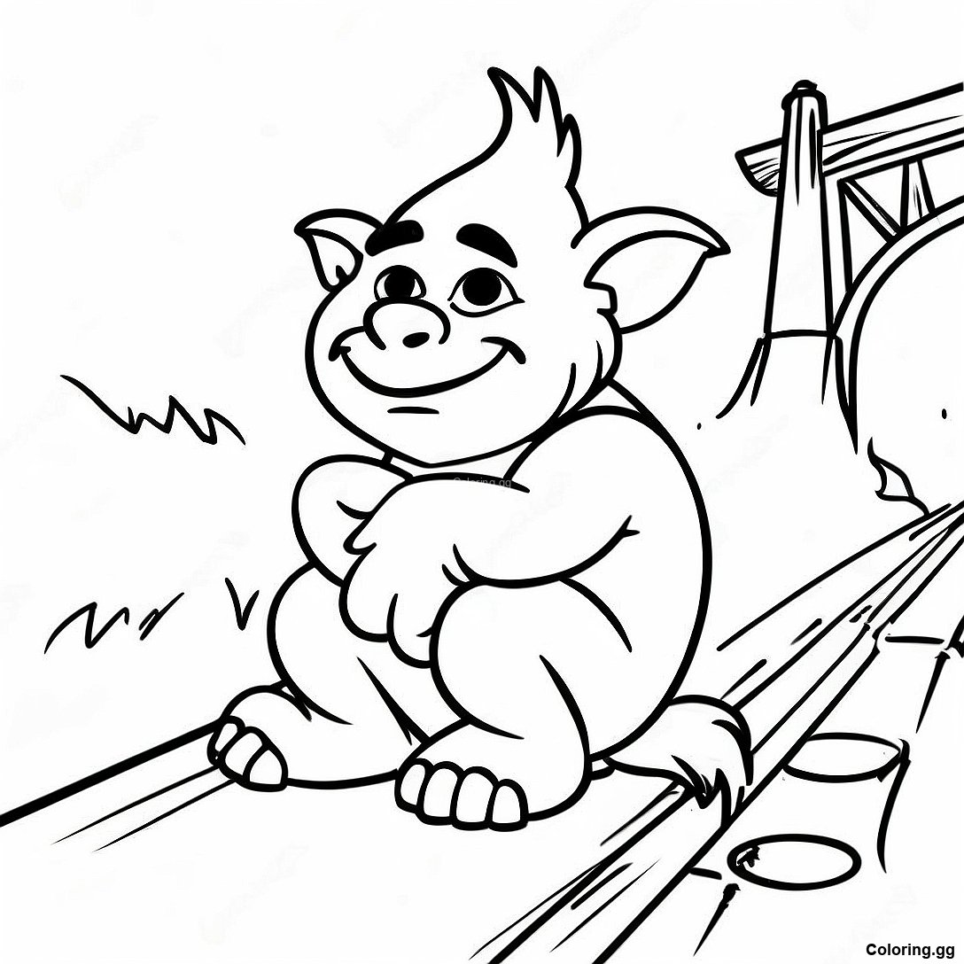 下载 生氣的巨魔坐在橋上著色頁 的可打印 PDF