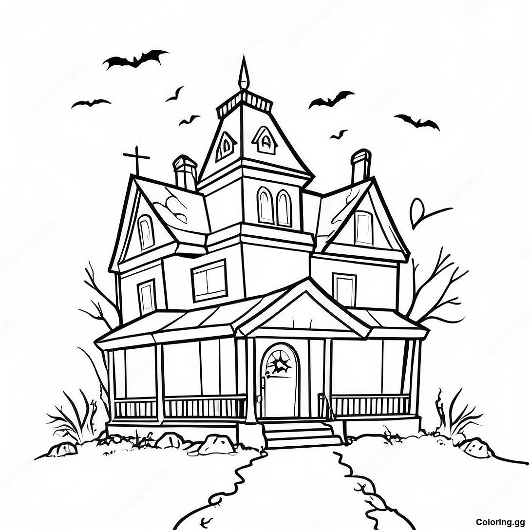 下载 陰森的鬼屋著色頁 的可打印 PDF